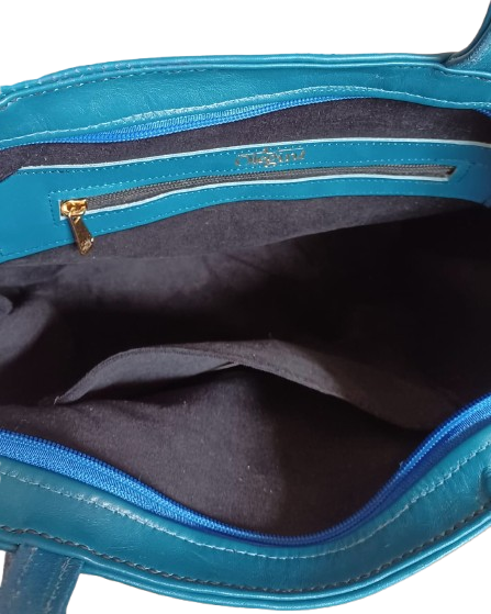 Bolsa feminina em couro legítimo, costurada à mão, forrada com tecido, com dois compartimentos internos, sendo um com ziper, com dimensão 26x35x11 centimetros, alça de ombro/mão fixa.