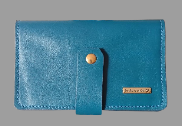 Carteira Feminina em Couro - Azul 18X11cm - DaGruta Produtos Naturais
